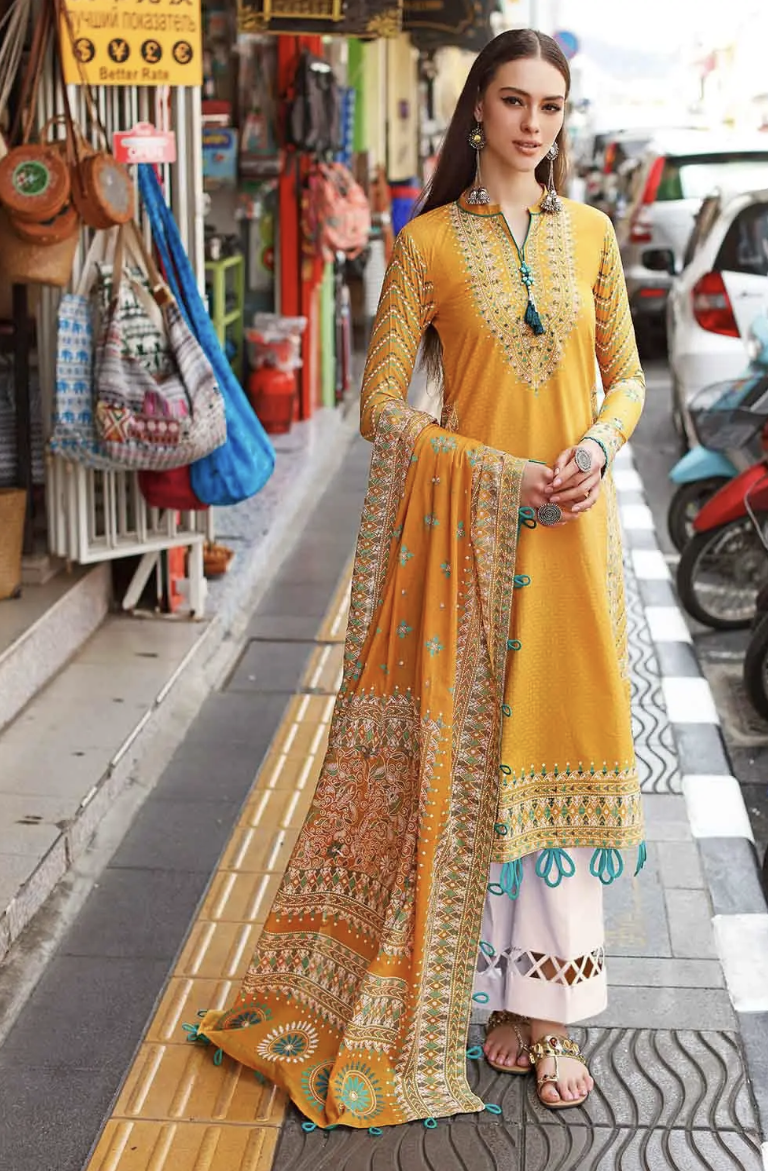 GA: 3PC Unstitched Lacquer Printed Haldi Lawn Suit